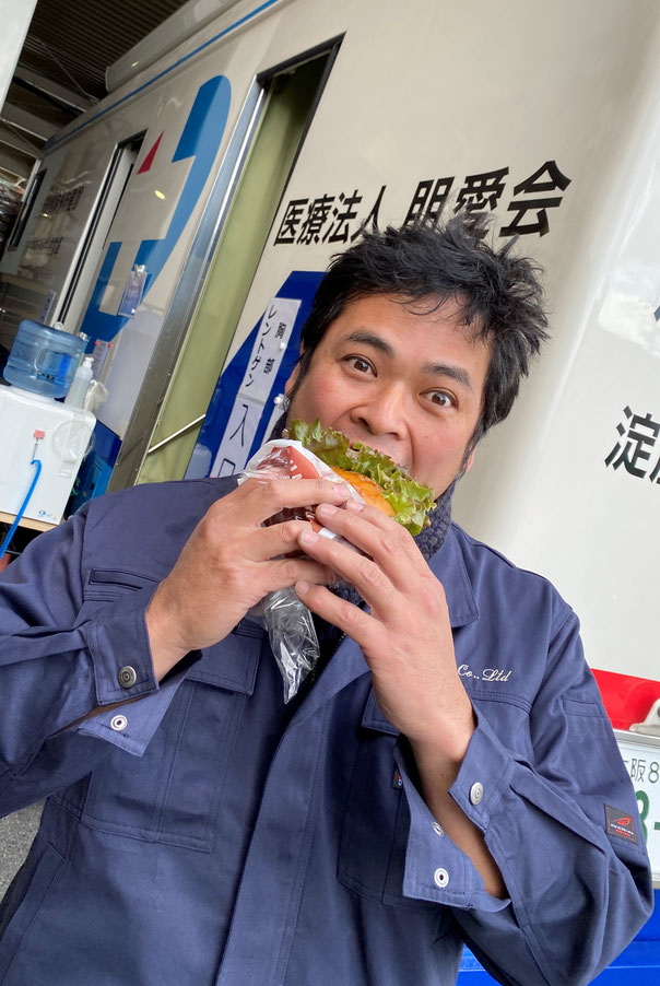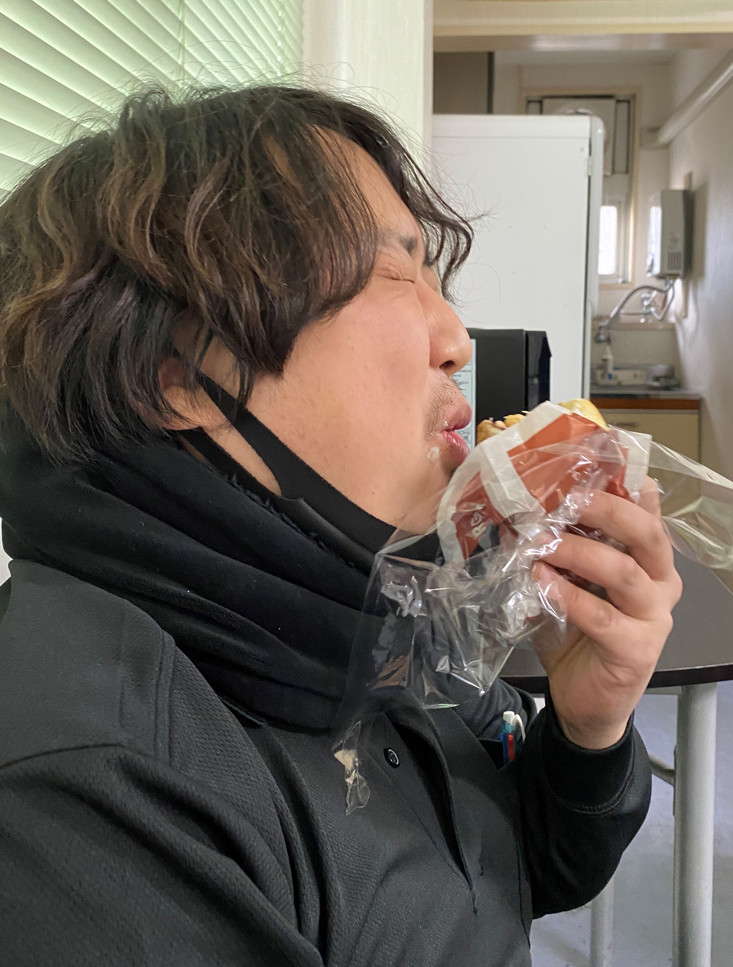 朝食抜きだとお昼まで持たないので、当社では毎年、健康診断後にパンを配給しています。