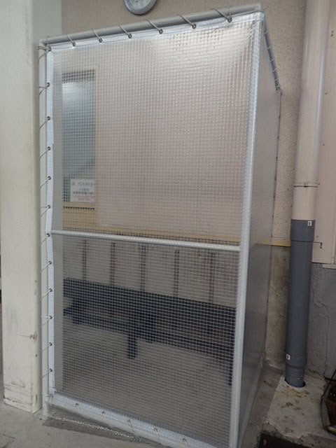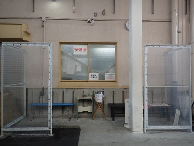 分煙スペースは風通しの良い所に設置されているので、風除けガードも設置されています。