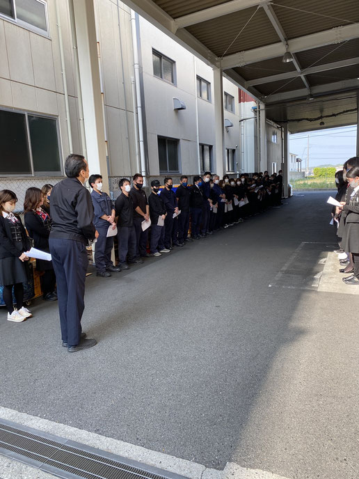 コロナ対策として、昨年と同様に今年度も本社庇の下の通路での開催となりました。
