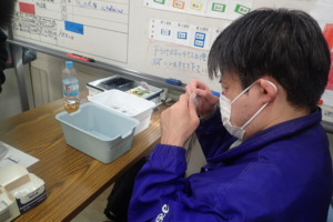 間違いが起きにくいよう、数確認や工程確認、目視確認、重量確認等、その都度支援員さんに声かけをし、チェックをしてもらい次に進む、といった工夫が数々されており、普段からとても綺麗に袋詰めして下さっているのがよく分かりました。今後も袋詰め以外でもしていただける作業があればお願いしていきたいですし、梱包していただいているネジがどんな製品に使用されているのかも伝えていけたら、さらに働く喜びに繋がっていくのではないかと思います。