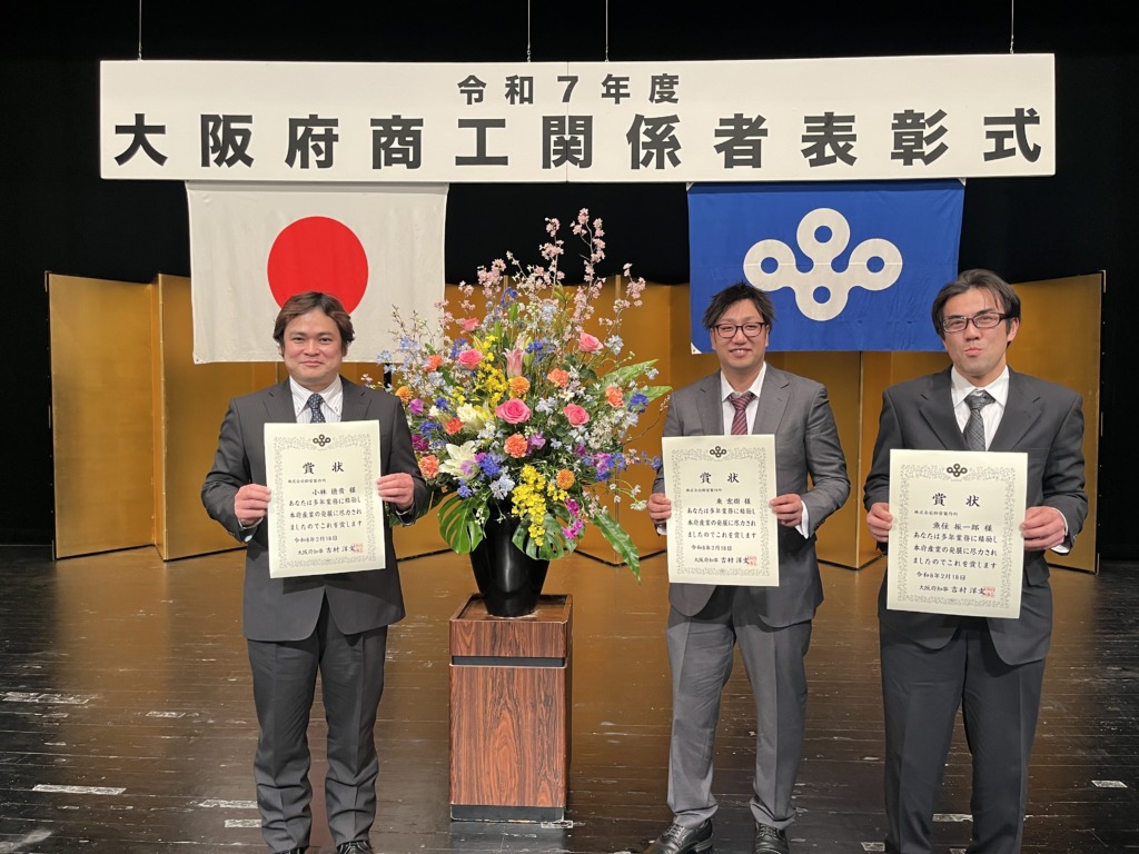 このたび、大阪府商工関係者表彰の製造業関係において、弊社から3名の社員が受賞いたしました。
