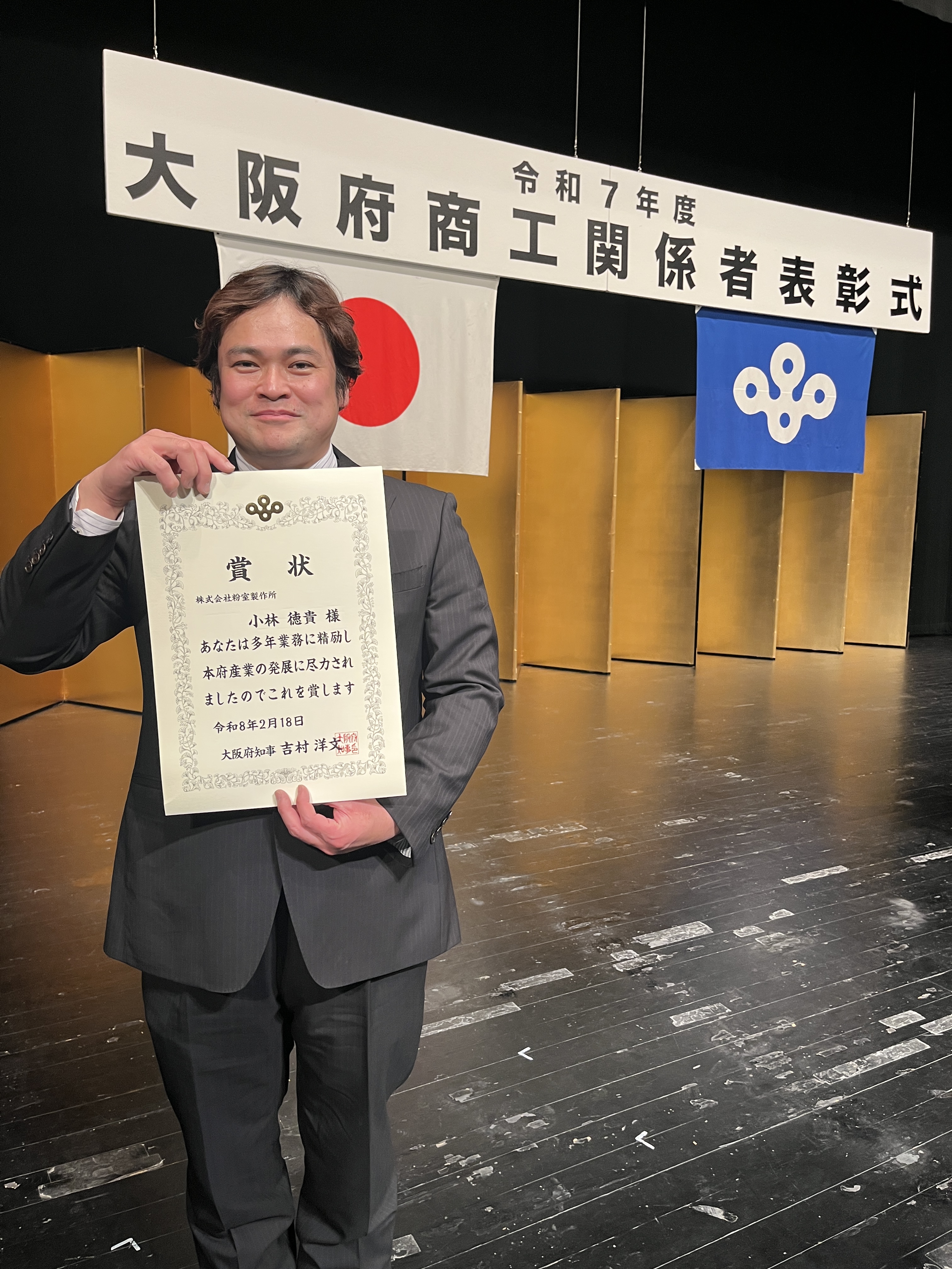 表彰式は2月18日(水)、エル・おおさかにて開催され、日頃の業務における技術力や地域産業への貢献が高く評価されました。